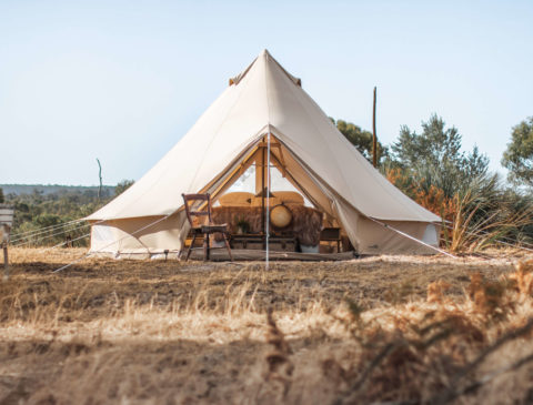 Roughing it in Style with a Bell Tent, Armadillo & Co Rugs and Kip & Co Bedding