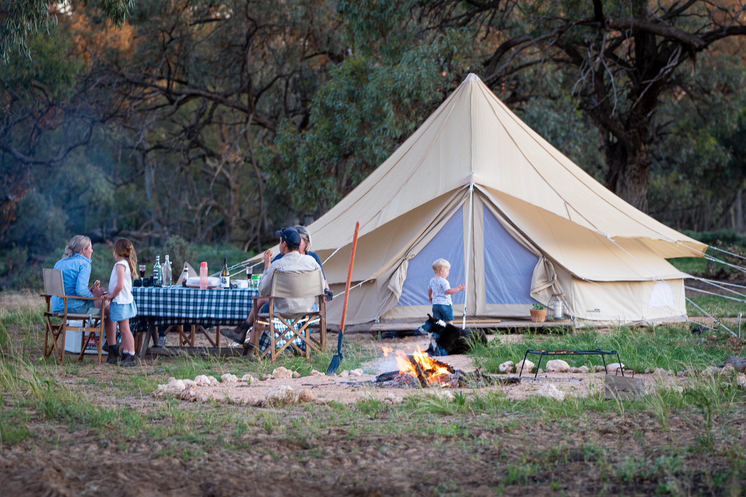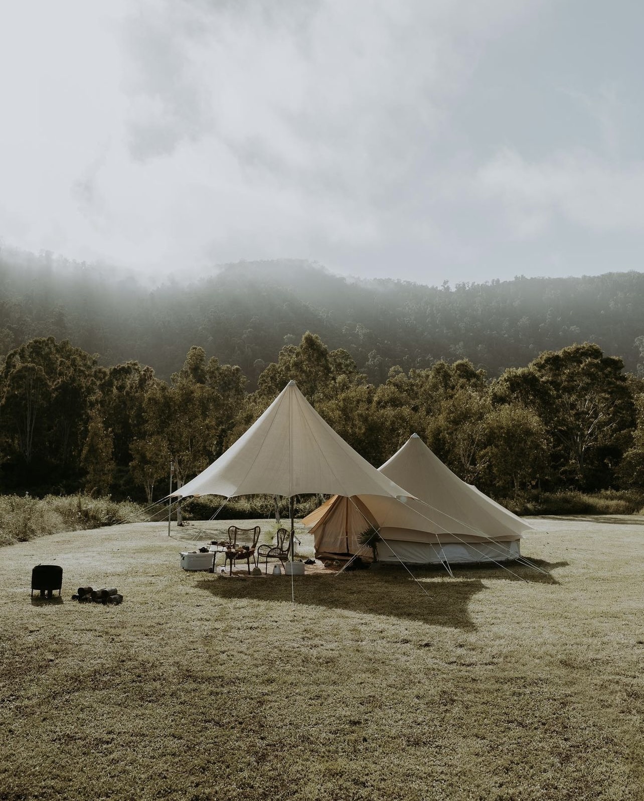 Additionally the bell tent protector will prolong the durability of your tent protecting the cotton from UV, wind and rain. Vents at the top ensure moisture trapped between the bell tent and protector can escape. Re-waterproofing will be required less frequently.