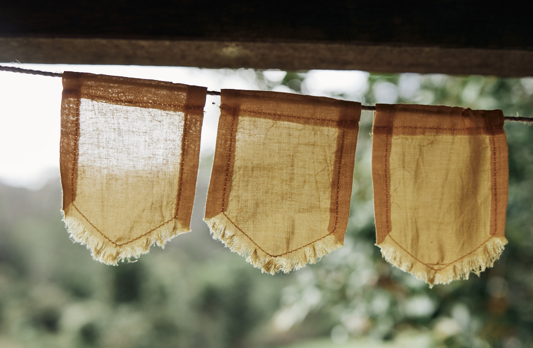 Our sweet little Shield Bunting is a great understated decoration and now comes in our new Summer colour way, Stark Yellow! With its frayed edges, lightweight fabric, and cotton rope, it’s the perfect decoration for that no fuss, simple life celebration we all want so much.