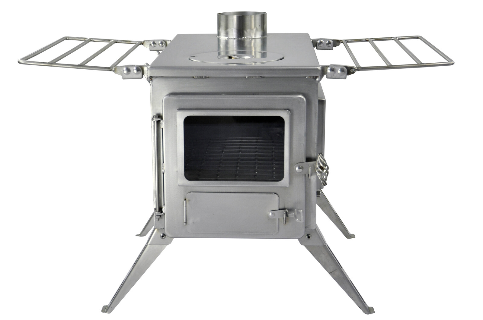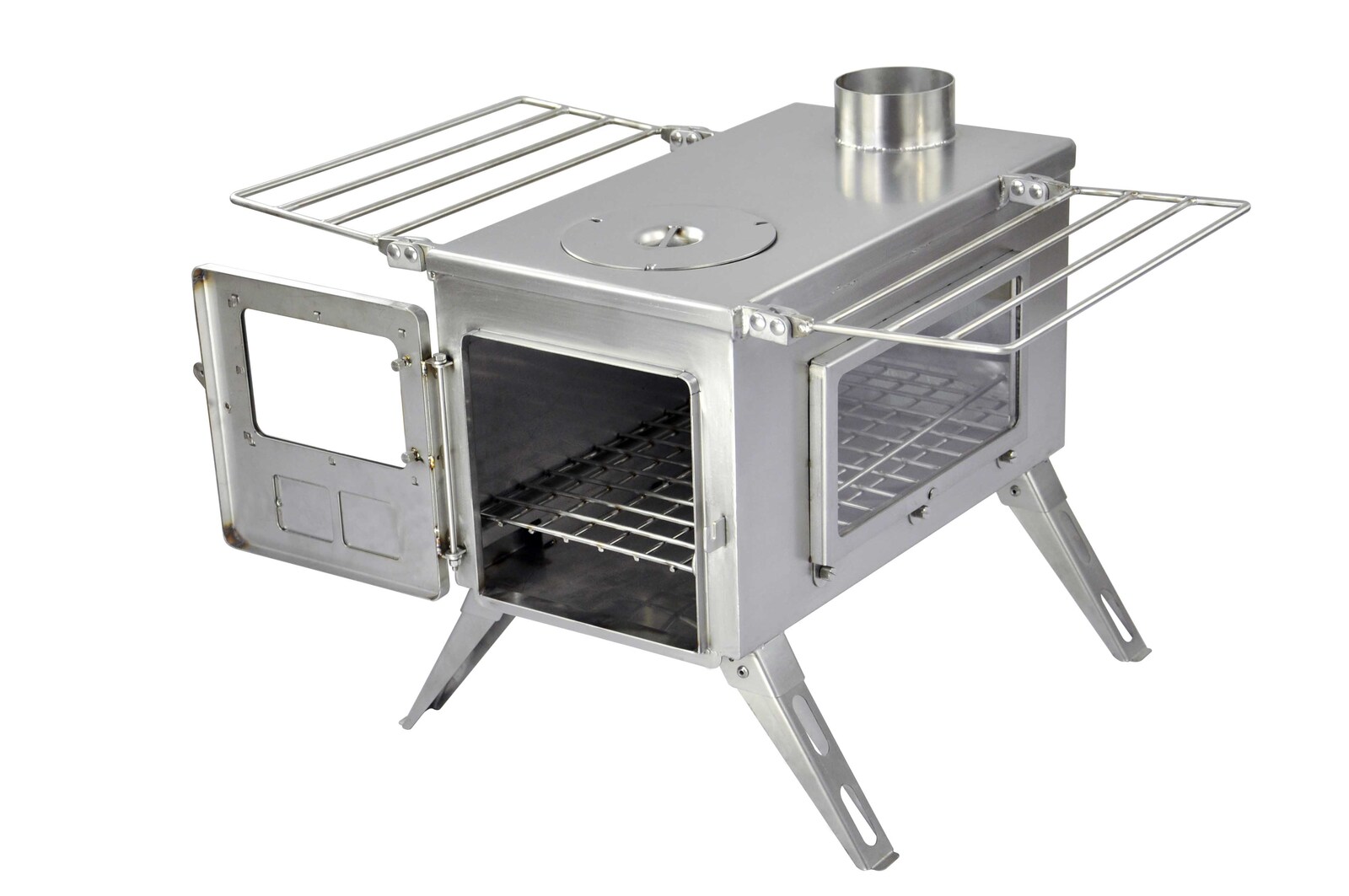 Materials: Made from 304 stainless steel, using 1/8” thick material for the cooktop and 1/16” thick material for the body, Winnerwell stoves are unique in the world of portable wood burning stoves. Good quality stainless steel lends several distinct advantages: It can be used in harsh outdoor environments; It can functionally withstand higher temperatures than mild steel, allowing thinner material to be used on the stove body which significantly reduces weight, ultimately making the stove more portable; And lastly, after the first burn, the stainless steel starts to take on a very nice patina color.